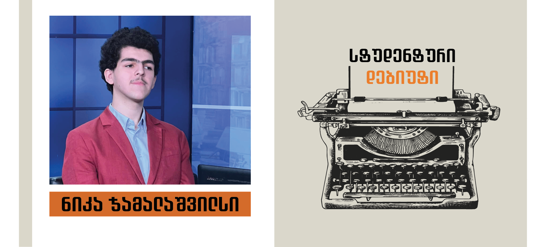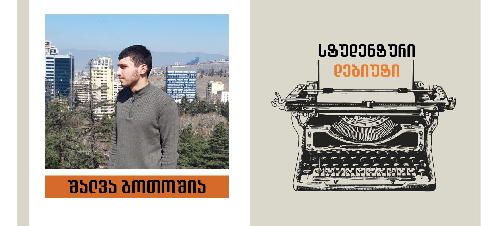 გარკვეული პაუზის შემდეგ კვლავ დავბრუნდით “სტუდენტური დებიუტის” რუბრიკით და ამ ხნის მანძილზე სათქმელიც ბევრი დავაგროვეთ. ისევ არ გვაკლებენ ჩვენი ნიჭიერი ახალგაზრდები მათით აღფრთოვანების მიზეზს, ამჯერად კი სულაც წიგნების ავტორებად მოგვევლინენ! ჟურნალისტიკისა და მასობრივი კომუნიკაციის მიმართულების სტუდენტებზე - ნიკა ჯამალაშვილსა და შალვა გოთოშიაზე და მათი ავტორობით გამოცემულ მხატვრულ ნაწარმოებებზე მოგახსენებთ.